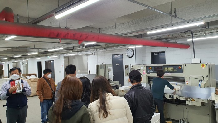 [사진설명] ㈜상지사피앤피에서 기업 탐방과 현장 면접이 실시되고 있다.