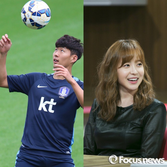 | △ 배우 유소영(우측)이 축구선수 손흥민.<사진제공=포커스뉴스> |