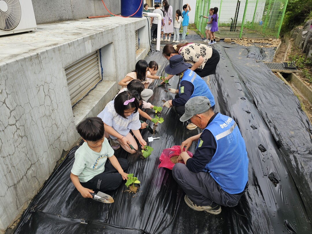 설악면 복지회관 뒤편의 공터는 풀이 무성하게 자라 뱀 등 야생동물의 공격 위험이 있어 인근 돌봄교실이나 어린이집 아이들에게 해가 될 수 있었던 장소였다. 이에 공터를 개간해 참외, 수박, 방울토마토 등 모종을 심어 돌봄교실과 어린이집 아이들이 텃밭을 체험할 수 있는 기회를 마련했다. 또한 작은 연못도 만들어 연꽃을 키우는 등 볼 거리를 제공했다.