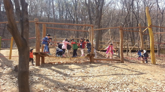 체험장에는 폐목재를 활용한 나무의자, 테이블과 흔들다리, 줄타기 등이 만들어졌고, ‘장난꾸러기 모래놀이터’, ‘몸튼튼 놀이터’, ‘도란도란 쉼터’, ‘똑똑 숲속교실’ 등이 조성됐다.
