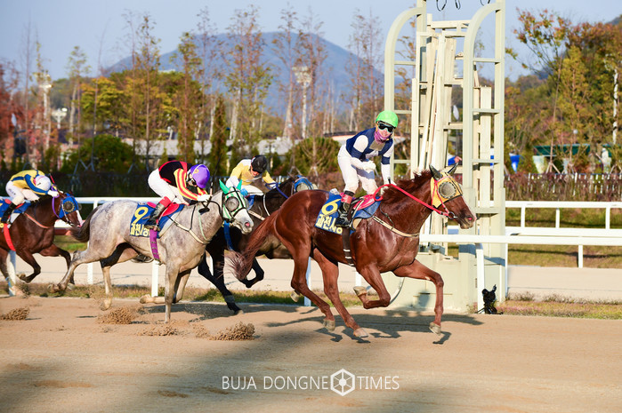 [부자동네타임즈 신동현 기자]‘초인마(2세, 수, 한국, R44)’가 ‘쥬버나일 시리즈’ 2연승을 하며 서울 신예 국산마 최강자는 자신임을 알렸다. 28일(토) 한국마사회(회장 이양호) 렛츠런파크 서울에서 열린 ‘과천시장배(L, 제9경주, 1200m, 2세, 국OPEN)에서 ‘초인마’가 치열한 접전 끝에 승리를 거머쥐었다. 경주기록은 1분 13초 2.