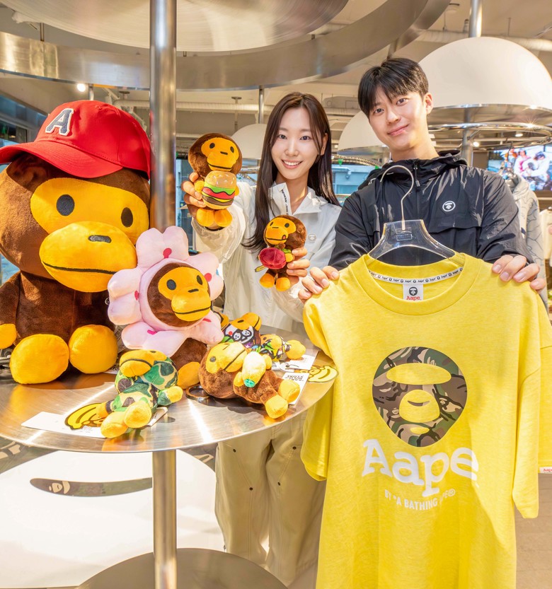 행사 기간 팝업 매장에서 에이프 상품 구매 전 고객 대상 스티커팩을 증정하고, 구매 금액대별 양말과 키링 등 다양한 사은품도 증정 프로모션도 진행한다.