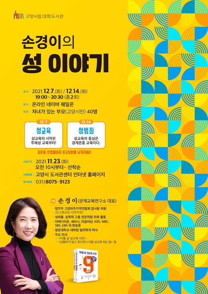 [부자동네타임즈 김인수기자] 고양시 대화도서관이 직장인 양육자도 참여할 수 있는 야간 독서문화 프로그램 손경이의 성 이야기를 12월 7일, 14일 온라인으로 운영한다.
