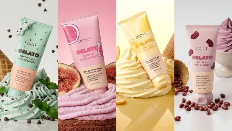 포인트 젤라또 팩 클렌저는 다양한 피부 고민과 취향에 맞춰 △시원한 민트초코 향과 함께 매일 쌓이는 모공 속 노폐물을 개운하게 세정해 주는 ‘포인트 젤라또 민트초로 팩 클렌저’ △부드러운 무화과 향과 함께 묵은 각질로 거칠어진 피부 결을 매끈하게 세정해 주는 ‘포인트 젤라또 소프트 무화과 팩 클렌저’ △상큼한 유자향과 함께 날이 갈수록 칙칙해지는 피부 톤 고민을 케어해 주는 ‘포인트 젤라또 시트러스 유자 팩 클렌저’ △달달한 단팥향과 함께 매일 아침 퉁퉁 부어 있는 얼굴 고민을 케어해 주는 ‘포인트 젤라또 단팥 팩 클렌저’로 구성됐다.