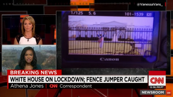 | △ 미국 추수감사절인 26일(현지시간) 한 남자가 울타리를 뛰어넘어 백악관에 침입하는 사건이 발생했다. (사진출처=CNN 방송 캡처) |