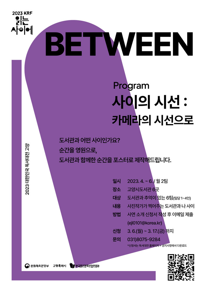 ‘2023 대한민국 독서대전’과 ‘BETWEEN’에 대한 자세한 내용은 대한민국 독서대전 홈페이지를 참고하거나 독서대전 TF으로 문의하면 된다.