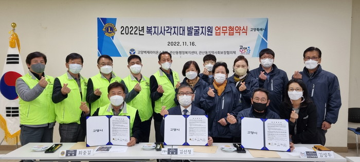 [부자동네타임즈 김인수기자] 고양특례시 관산동 행정복지센터는 지난 16일 고양벽제라이온스클럽과 관산동 지역사회보장협의체가 복지사각지대 발굴과 지역복지사업에 공동 협력하기 위해 업무협약을 체결하였다고 밝혔다.