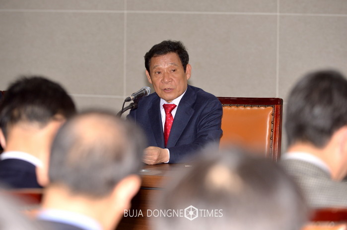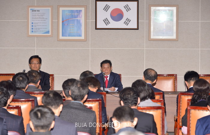 | △윤장현 광주시장은 헌법재판소가 탄핵을 선고함에 따라 오후 1시 4급 이상 광주시 공직자가 참여한 긴급 간부회의를 열고 "오늘 이후로 광주광역시 공직자들도 새로운 대한민국을 세워간다는 각오로 함께 일합시다."고 당부하고 있다 |