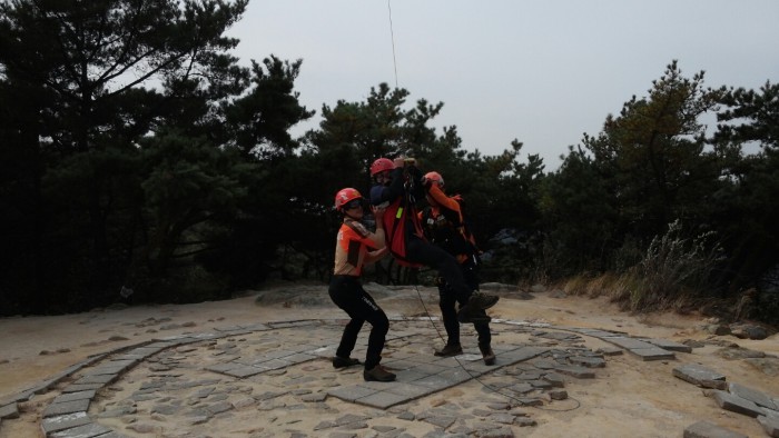 산악구조대는 신고받은 즉시 현장에 도착해 부상을 입은 김씨에게 응급처치를 한 후 헬기를 이용해 보라매 병원으로 옮겼다.