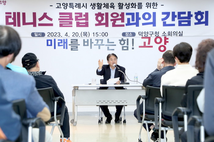 [부자동네타임즈 김인수기자] 고양특례시(시장 이동환)는 4월 20일 15시 덕양구청 소회의실에서 고양시테니스협회 임원진 및 클럽장 등 60여명을 초대하여 생활체육인들과 소통하는 시간을 가졌다.
