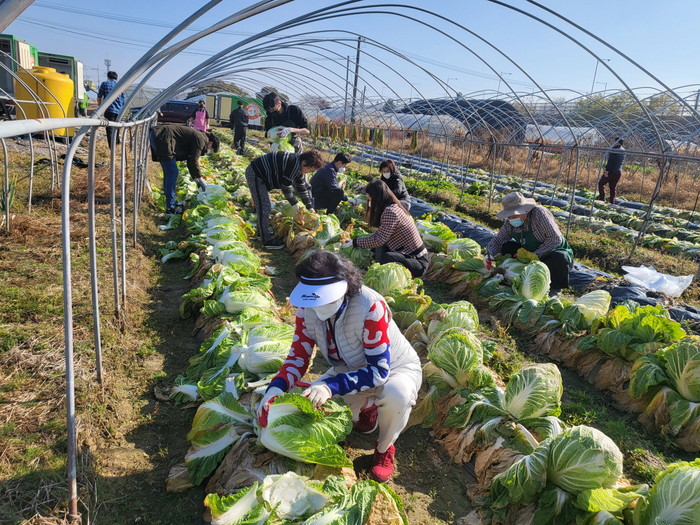장항1동 주민자치회 ‘자연아놀자’ 분과에서는 2022년 사업으로 주민자치 한마음농장을 운영하여 올 봄부터 주민자치회에서 직접 재배한 배추를 주민자치회 위원들과 함께 수확했고, 배추 400여 포기를 흰돌종합사회복지관과 문촌9종합사회복지관에 전달하는 행사를 진행했다.