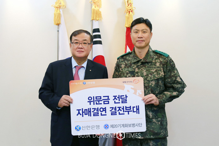 [부자동네타임즈 이현재 기자]신한은행은 15일 제20기계화보병사단을 방문해장병들을 격려하고 위문금을 전달하는 행사를 가졌다고 16일 밝혔다