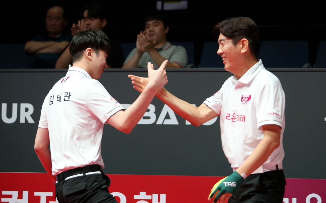 크라운해태도 SK렌터카를 상대로 승점3을 챙기면서 우승경쟁을 최종일로 몰고 갔다. 크라운해태는 4세트까지 세트스코어 2:2로 팽팽히 맞선 5세트서 다비드 마르티네스(스페인)가 에디 레펜스(벨기에)를 12이닝 접전 끝에 11:6으로 제압한 데 이어 백민주가 히다 오리에(일본)를 9:8(8이닝)로 꺾고 경기를 세트스코어 4:2 승리로 장식했다.