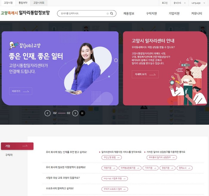 시는 고양시일자리통합정보망 전면 개편을 통해 구직자와 기업이 관내 민간·공공 채용 정보, 교육 훈련 정보, 정책 지원 제도 등 맞춤형 일자리 정보를 한곳에서 실시간으로 확인할 수 있도록 했다.