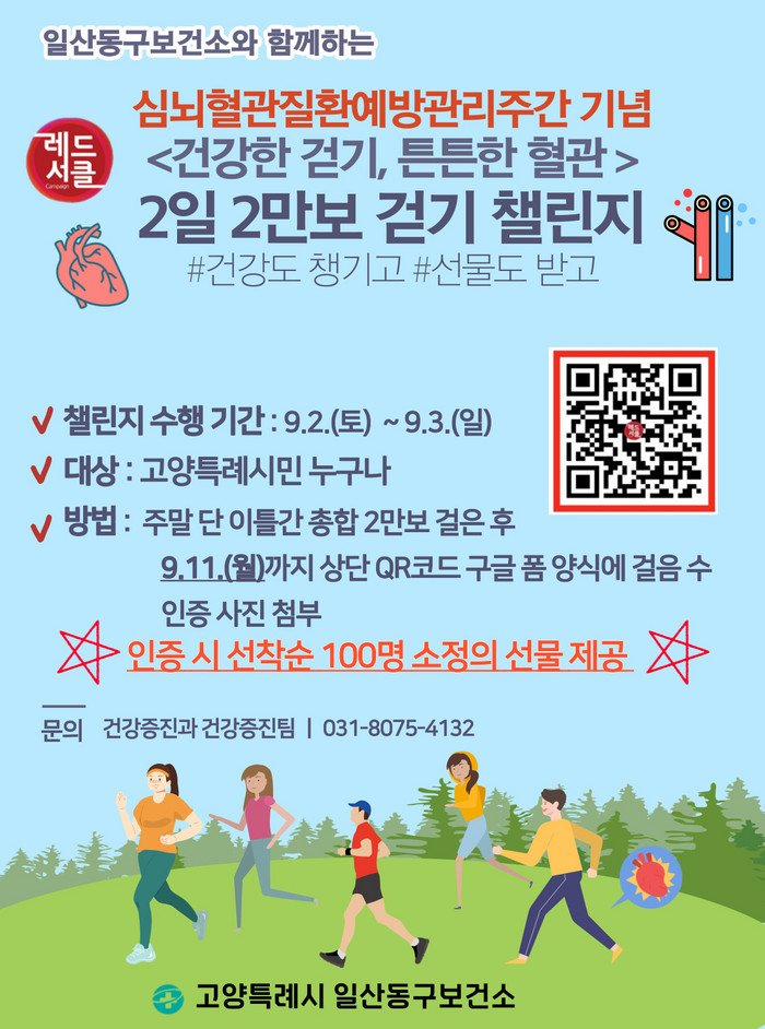 [부자동네타임즈 김인수기자] 매년 9월 첫째 주는 질병관리청이 주관하는 심뇌혈관질환 예방관리주간이다. 고양특례시(시장 이동환) 일산동구보건소가 2023년 심뇌혈관질환 예방관리주간을 맞아 ‘레드서클 캠페인’을 진행한다.