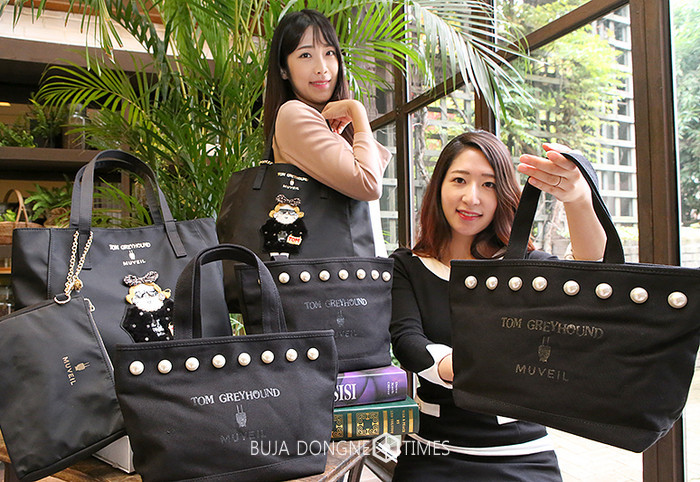 '톰그레이하운드'는 현대백화점그룹 계열 패션 전문 기업인 한섬이 운영하는 수입의류 전문 편집숍으로, 일본 유명 패션 브랜드 '뮤베일'과 함께 쇼퍼백을 제작했다. '뮤베일'의 할머니 인형으로 된 가방 액세서리(백참)는 국내 고객들 사이에서 '직구템'으로 유명하다.