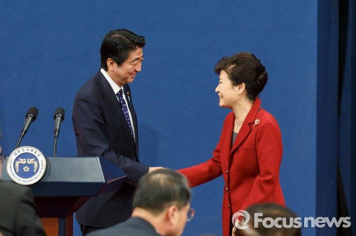 한일 정상의 단독회담은 2012년 5월 이후 3년 반 만이며 박근혜 대통령 취임 후 처음이다.