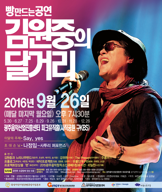 9월29일 오후 7시 30분에 사직공원에 있는 광주음악산업진흥센터 피크뮤직홀(구. KBS)에서 뵙겠습니다.