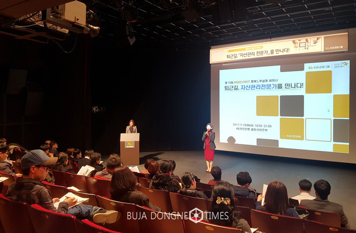 [부자동네타임즈 이현재 기자]KB국민은행은 지난 15일, 서울 강남구 KB아트홀에서 30,40대 고객 150여명을 초청해『퇴근길, 자산관리 전문가를 만나다!』특강을 개최했다고 밝혔다.