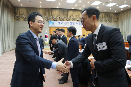 부장검사들과 인사 나누는 구자현 검찰총장 대행