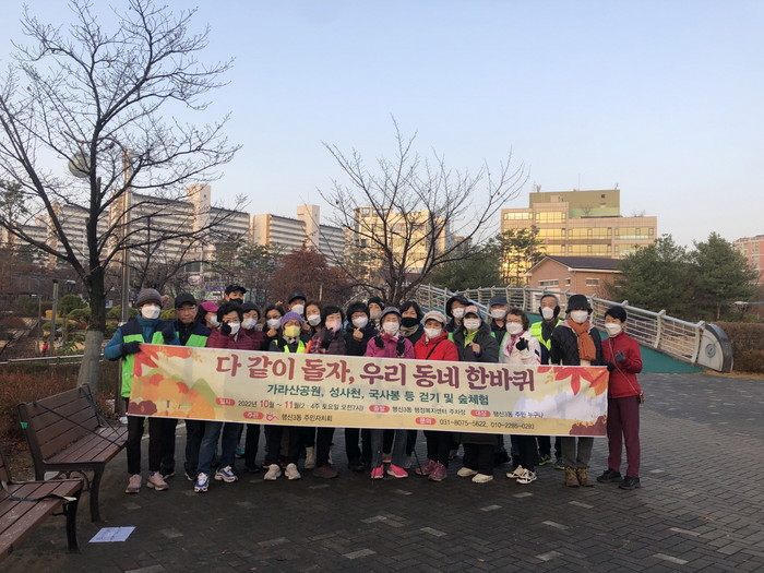 행사는 지난 10월 8일부터 시작해 둘째, 넷째 주 토요일 총 4회에 걸쳐 행신동 인근을 걷는 일정으로 진행됐다. 매회 다른 트레킹 코스 및 숲해설가 배치로 걷기의 재미를 더했으며 행신3동 시민안전지킴이, 주민자치 위원이 안전요원으로 나섰다. 걷기 코스는 ▲1회 지렁산 둘레길 ▲2회 국사봉 둘레길 ▲3회 지도공원 능골동산길 ▲4회 성사천으로 편성됐다.