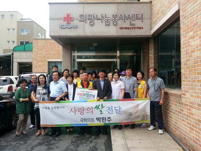 권처원 적십자 천안지회장은 “쌀 화환 나눔은 쌀 수입개방으로 어려움에 처한 농가를 돕고, 쌀 소비 확대뿐만 아니라 어려운 이웃에게 식사까지 제공할 수 있어 좋은 선례”라며 “앞으로도 박완주 의원의 많은 지원을 기대한다”며 활짝 웃었다.