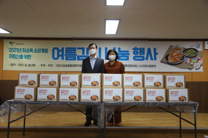 [부자동네타임즈 김인수기자] 고양시 삼송동종합복지회관은 지난 26일 ‘여름김치 나눔 행사’를 진행해 코로나 장기화로 힘든 시기를 보내고 있는 지역 내 취약계층 150가구에 배추김치를 전달했다.
