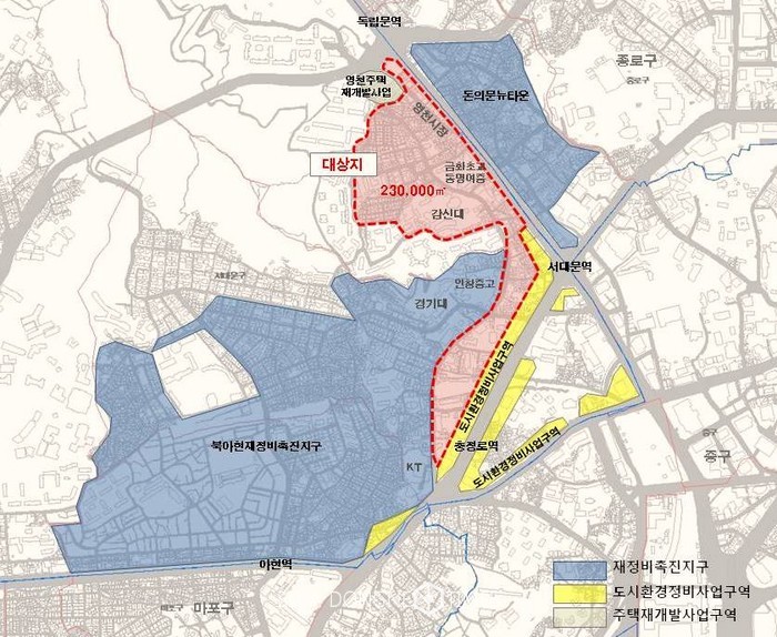 대상 지역은 충정로역에서 영천시장에 이르는 서대문역세권으로 면적은 약 230,000㎡다.