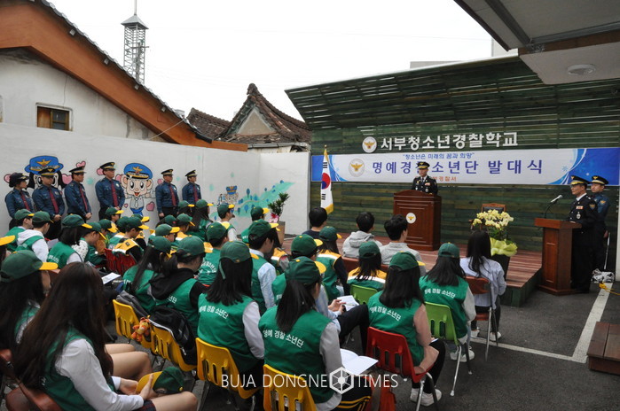 이유진 경찰서장은 "또래지킴이인 명예경찰소년단원의 활동이 자라나는 꿈나무들에게 좋은 본보기가 될 것"이 라며 "안전하고 행복한 학교 분위기 조성에 적극 나서주길 바란다"고 당부했다.