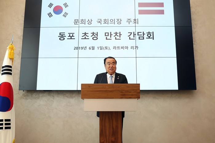 [부자동네타임즈 이교영 기자]라트비아를 공식 방문 중인 문희상 국회의장은 현지시간 6월 1일(토) 라트비아 리가에 위치한 그랜드호텔 캠핀스키에서 동포 초청 만찬간담회를 가졌다.