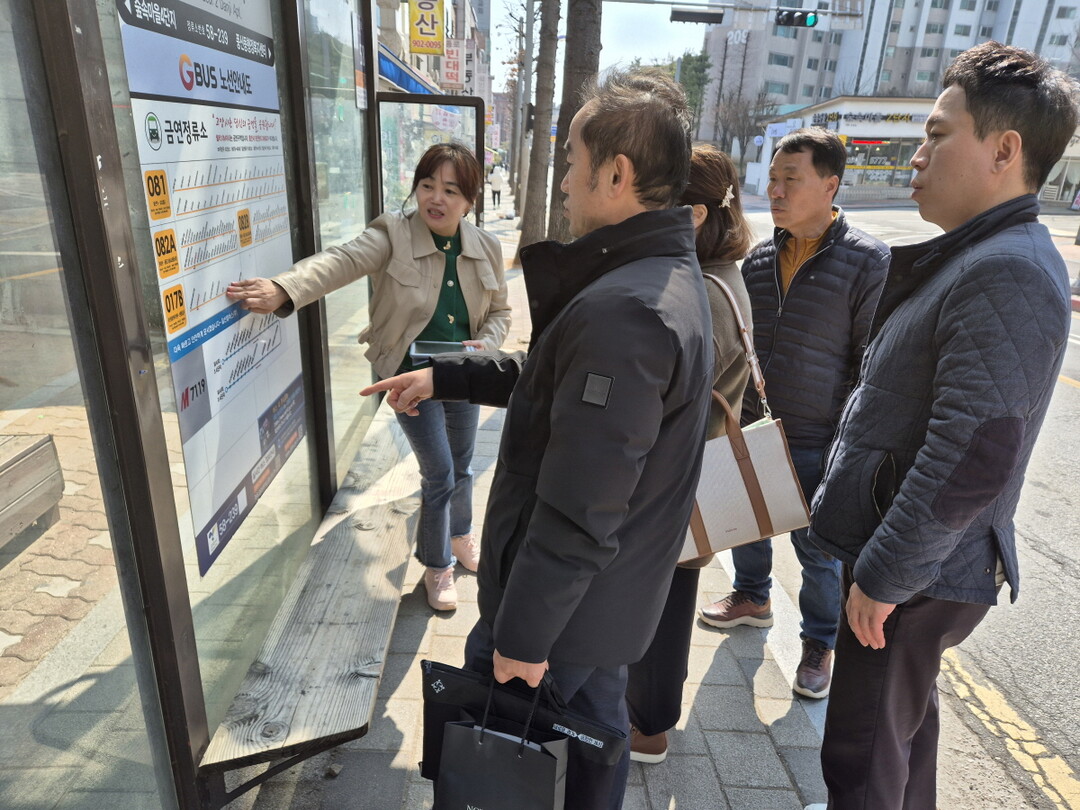 이번 점검의 중점 확인 사항은 버스운행정보와 버스정류장 내 부착물의 일치 여부, 버스정류장 훼손 및 주민안전 위해요소 확인이었다. 그 외에도 풍산동장과 통장 등은 관할지를 돌아다니며 동 내 불편사항을 듣고 개선점에 대해 다양한 의견을 주고받았다.