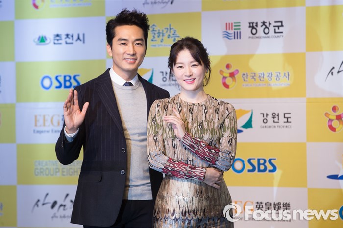 (강릉=포커스뉴스) 30일 오전 강원도 강릉 씨마크 호텔에서 열린 드라마 '사임당(The Herstory)' 기자간담회에 참석한 배우 송승헌(왼쪽)과 이영애가 포토타임을 갖고 있다.