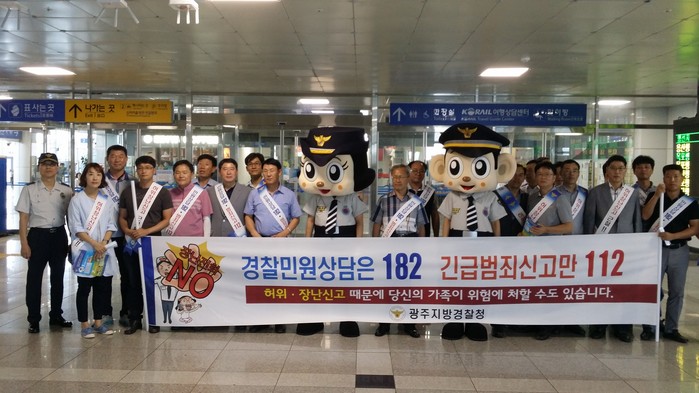 [광주=부자동네타임즈 손권일 기자] 광주지방경찰청(청장 최종헌)은 지난 8~9일 양일간까지 광산구 광주송정역사 내에서 112종합상황실장 등 60여명과 광산경찰서가 공동으로 '허위·장난신고 근절 및 올바른 112신고'를 위한 캠페인을 개최했다.