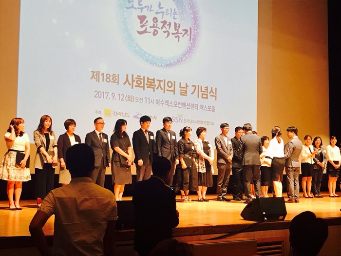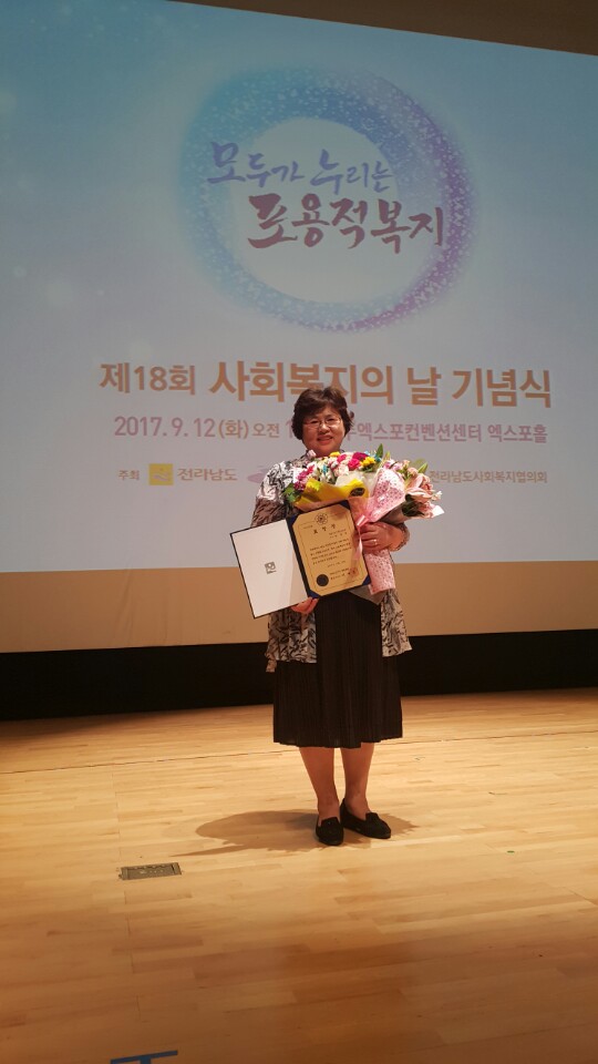 지난 9월 12일 여수엑스포컨벤션센터에서 전남사회복지협의회 주관으로 열린 '제18회 사회복지의 날' 기념식에서 노인복지타운 직원 2명이 도지사 표창을 수상하는 영광을 안았다.