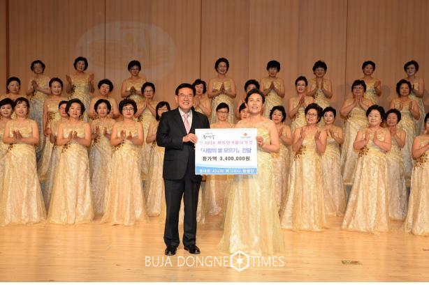 특히 이번 정기연주회는 소외계층과 희망을 나누는 행사를 진행해 의미를 더했다. 연주회가 끝난 후 합창단이 축하 꽃다발을 대신하여 받은 백미(10kg 136포, 약 340만원 상당)를 기부자의 이름으로 어려운 이웃을 위해 써달라며 동대문구에 전달했다.