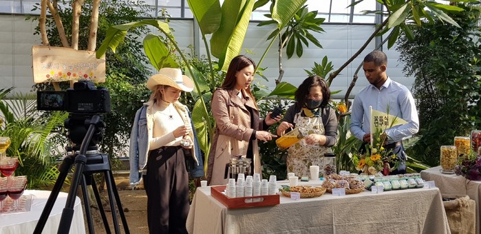고양시농업기술센터에서 처음 시도된 라이브 커머스 방송인 ‘건강은 자연올e-지켜줄고양!’은 시 농산물가공지원센터에서 생산한 ‘자연올’ 브랜드 제품 총 37종(열무김치, 돼지감자차, 작두콩차, 식혜와 새싹잼, 울금분말, 서리태 분말 등)을 전시하고, 도깨비부엌 영농조합법인 외 총 9농가가 함께 참여해 제품홍보 이벤트를 진행했다. 또한 선우벌꿀과 등 농산물가공창업반을 수료하고 단독 가공제품 브랜드로 창업한 농가 제품 10여종도 전시, 판매됐다.
