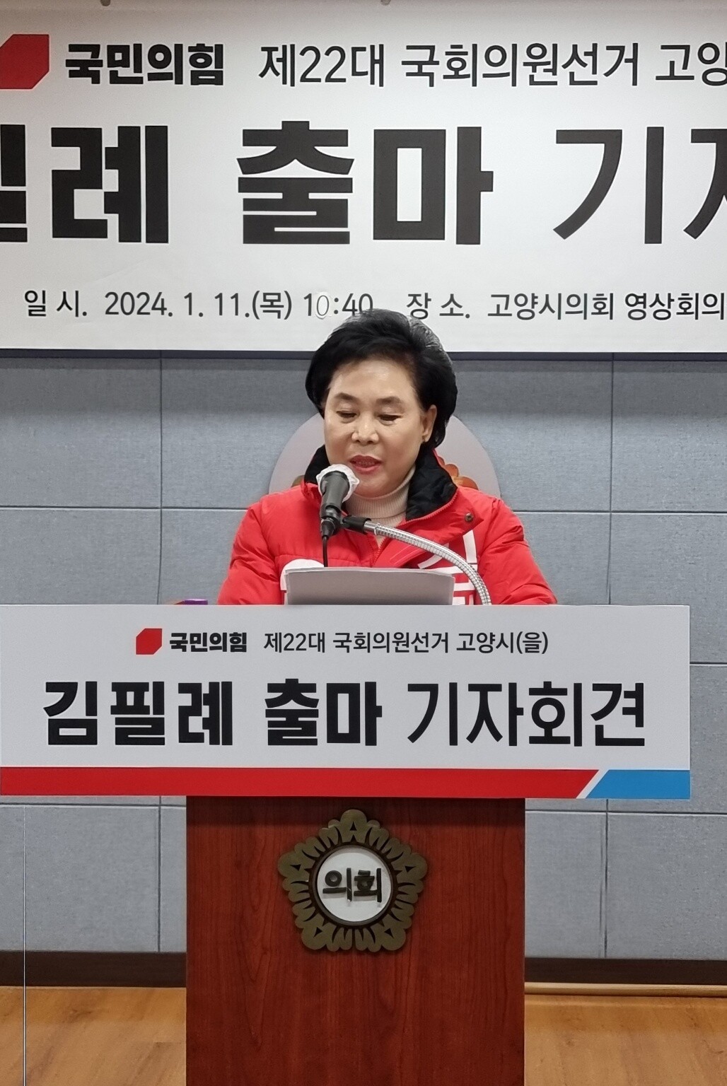 [부자동네타임즈 = 김인수 기자] 고양시가 키운 대표 여성 정치인으로 알려진 고양시의회 최초의 여성 의장 국민의힘 김필례 전 고양시을 당협위원장이 제22대 국회의원선거에 출마한다.