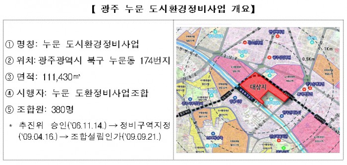 국토부와 광주시는 내년 3월까지 광주 누문지구에 대한 정비계획변경, 사업시행인가를 마무리하고 본격 착공에 나설 수 있도록 할 계획이다.