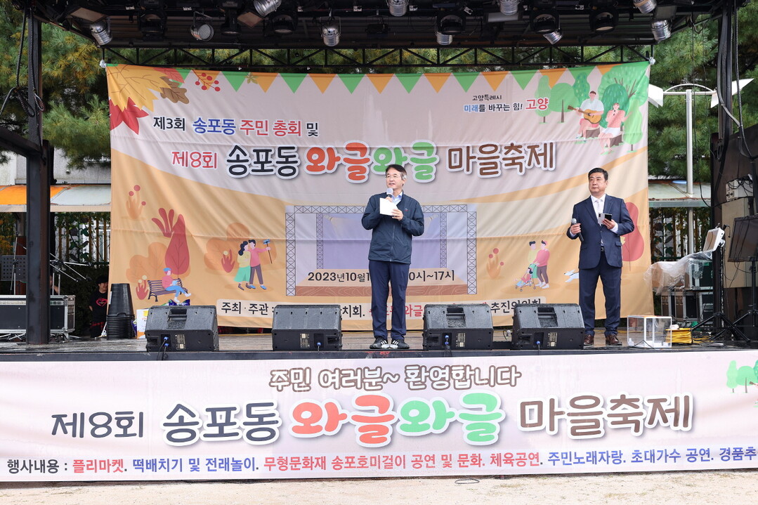 축제는 경기무형문화재 송포호미걸이 공연으로 시작해 오케스트라, 전통공연 등을 사전공연으로 준비했다. 개회식에는 이동환 고양특례시장, 김영식 고양특례시의장, 이용우 국회의원 등 여러 내빈이 참석해 송포동 마을축제 개최를 축하해 주었다.