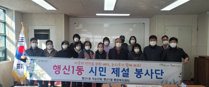 행신1동 주민으로 구성된 제설봉사단은 강설 및 폭설·한파 등으로 인한 주민 피해를 최소화하기 위해 신속한 제설작업 실시와 함께 내 집 앞, 내 점포 눈치우기 운동을 적극적으로 홍보하는 역할을 수행한다.