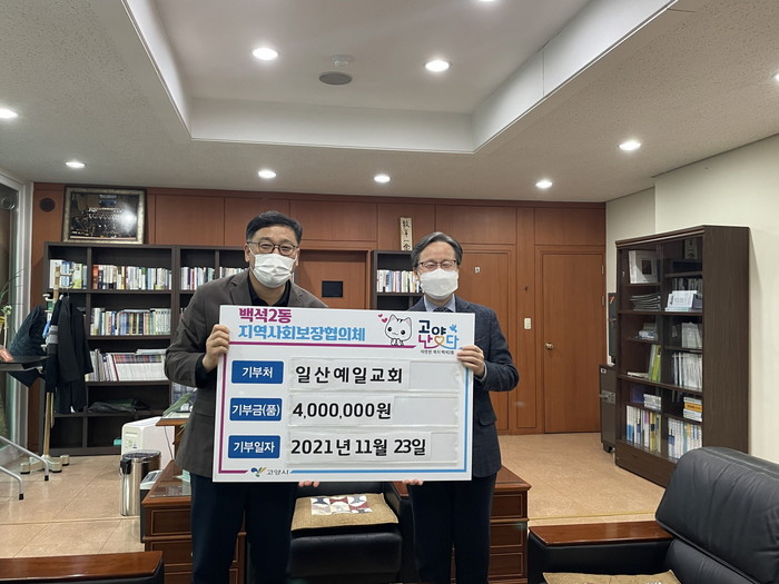 [부자동네타임즈 김인수기자] 고양시 일산동구 백석2동 행정복지센터는 지난 1일 일산 예일교회(담당목사 한현수)로부터 기탁받은 성금 400만원을 관내 저소득계층에게 전달했다.