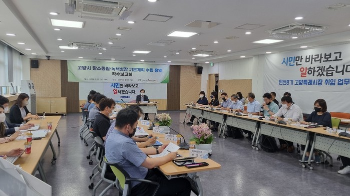 고양시청에서 열린 착수보고회에는 한창익 기후환경국장과 김미수 시의원, 정민경 시의원, 관련 전문가, 시민단체, 관련 부서 등 총 20여명이 현장 참석하고 15개 관련 부서의 담당자들이 온라인으로 참여했다.