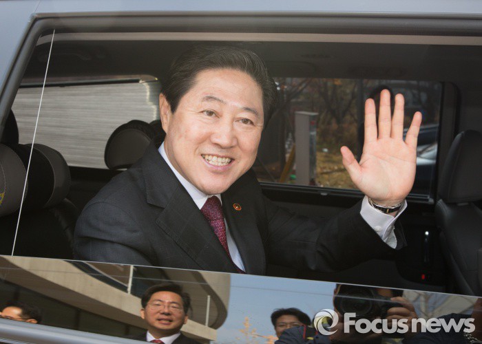(세종=포커스뉴스) 유기준 해양수산부장관이 11일 오전 세종시 정부세종청사 대강당에서 열린 퇴임식을 마치고 손인사를 하고 있다.