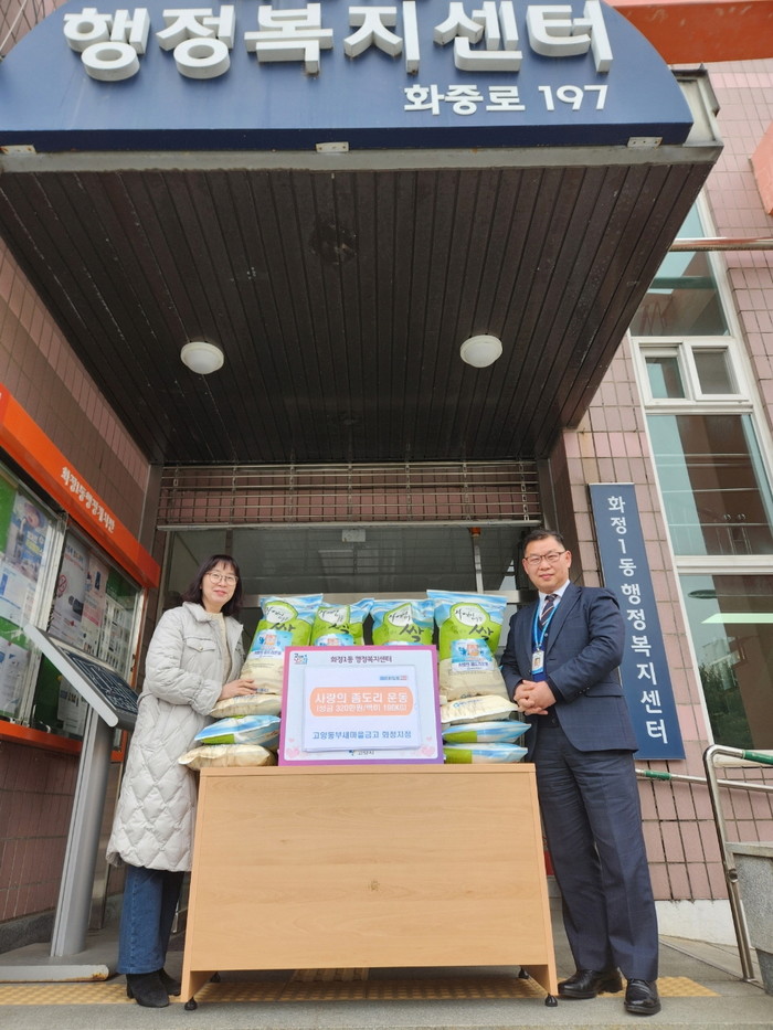 [부자동네타임즈 김인수기자] 고양특례시 화정1동 행정복지센터는 지난 17일, 고양동부새마을금고 화정지점으로부터 ‘사랑의 좀도리운동’을 통해 마련한 쌀 19포(10kg)와 성금 320만 원을 기부 받았다고 밝혔다.