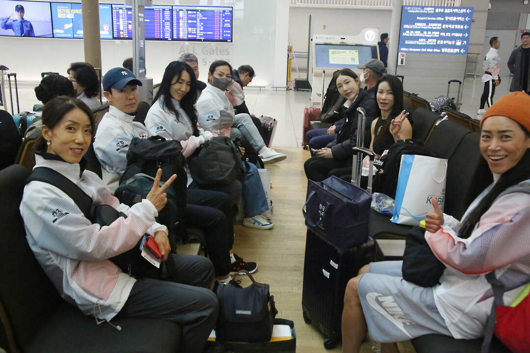 [사진설명] 선수단이 스페인으로 출국 전 단체사진을 찍고 있다.