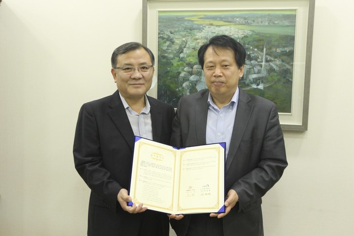 | △ 노사발전재단과 업무협약 체결 ((엄현택 사무총장, 이성 구청장) |