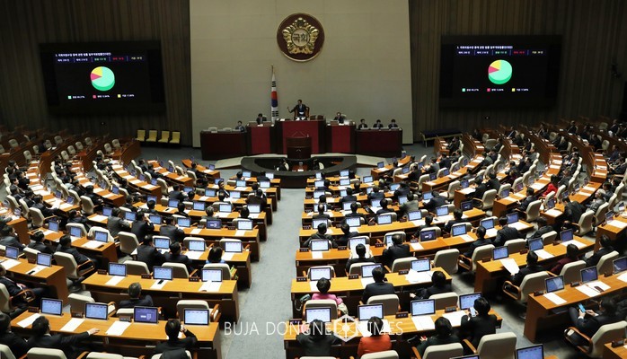 [부자동네타임즈 조영재 기자]24일 오전 서울 여의도 국회 본회의장에서 열린 제354회 국회(정기회) 제13차 본회의에서 국회의원수당 등에 관한 법률 일부개정법률안이 재석의원 218명 중 찬성 151명, 반대 28명, 기권 39명으로 가결처리 되고 있다. 2017.11.24