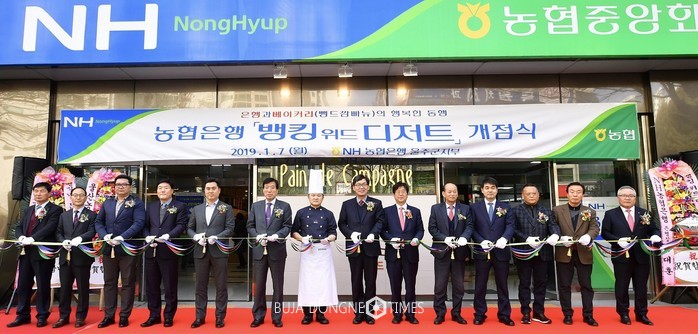 [부자동네타임즈 이현재 기자]NH농협은행(은행장 이대훈)은 지난 7일 울산광역시 남구 문수로에 은행 영업점과 베이커리를 결합한 「뱅킹 위드 디저트」 특화점포 1호점 개점식을 가졌다고 8일 밝혔다.