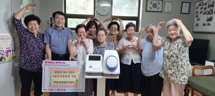 이번 전달식에는 최호석 화정2동장, 경로당 회장 및 어르신 20여 명이 참석했다. 관내 경로당 10개소에 혈압계와 테이블, 의자를 전달했다.