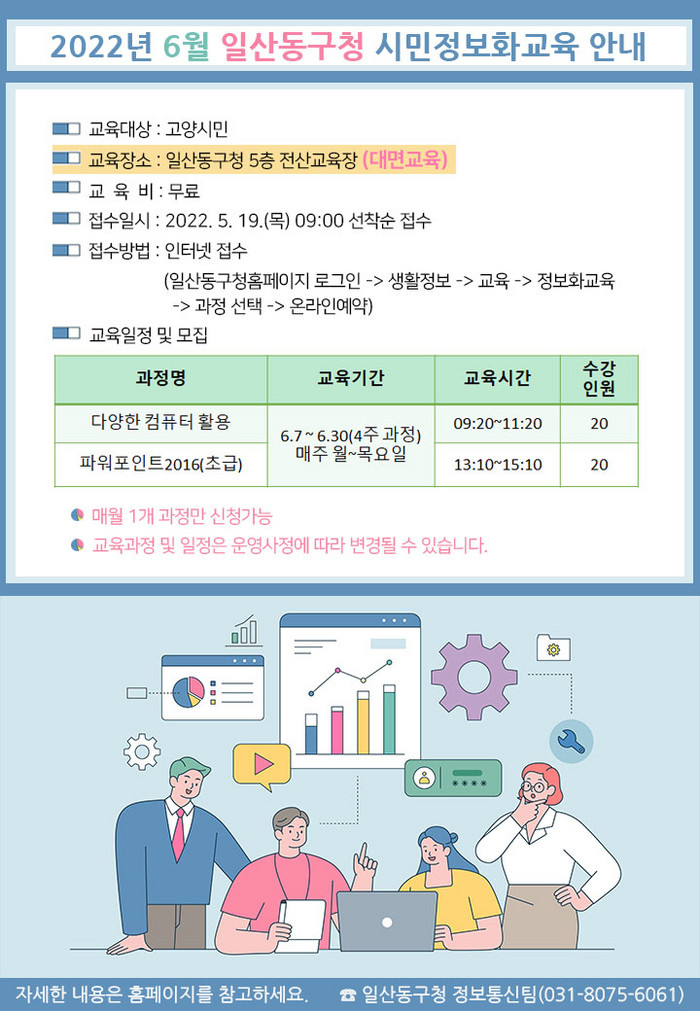 교육과 관련된 자세한 사항은 일산동구 정보통신팀으로 문의하면 된다.